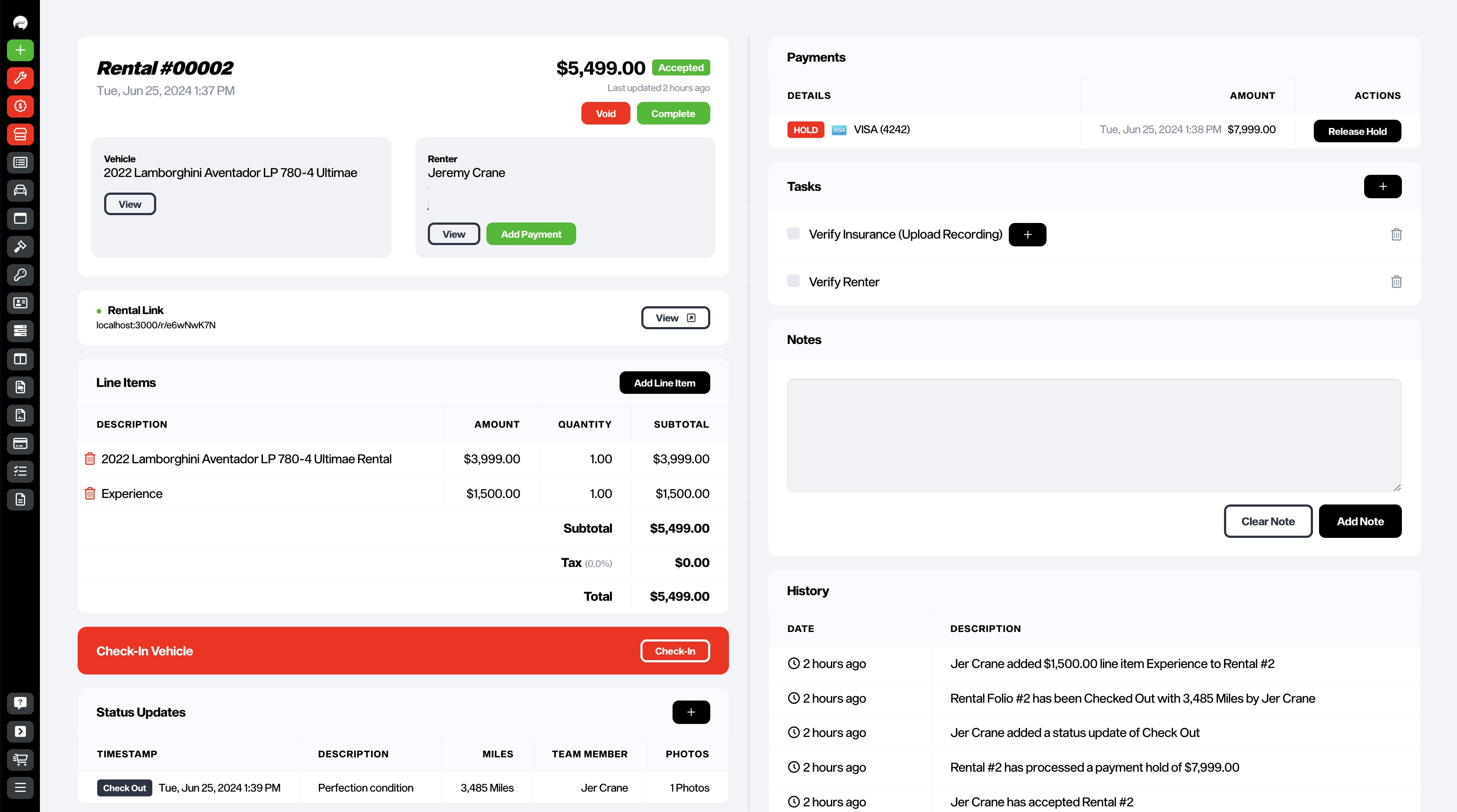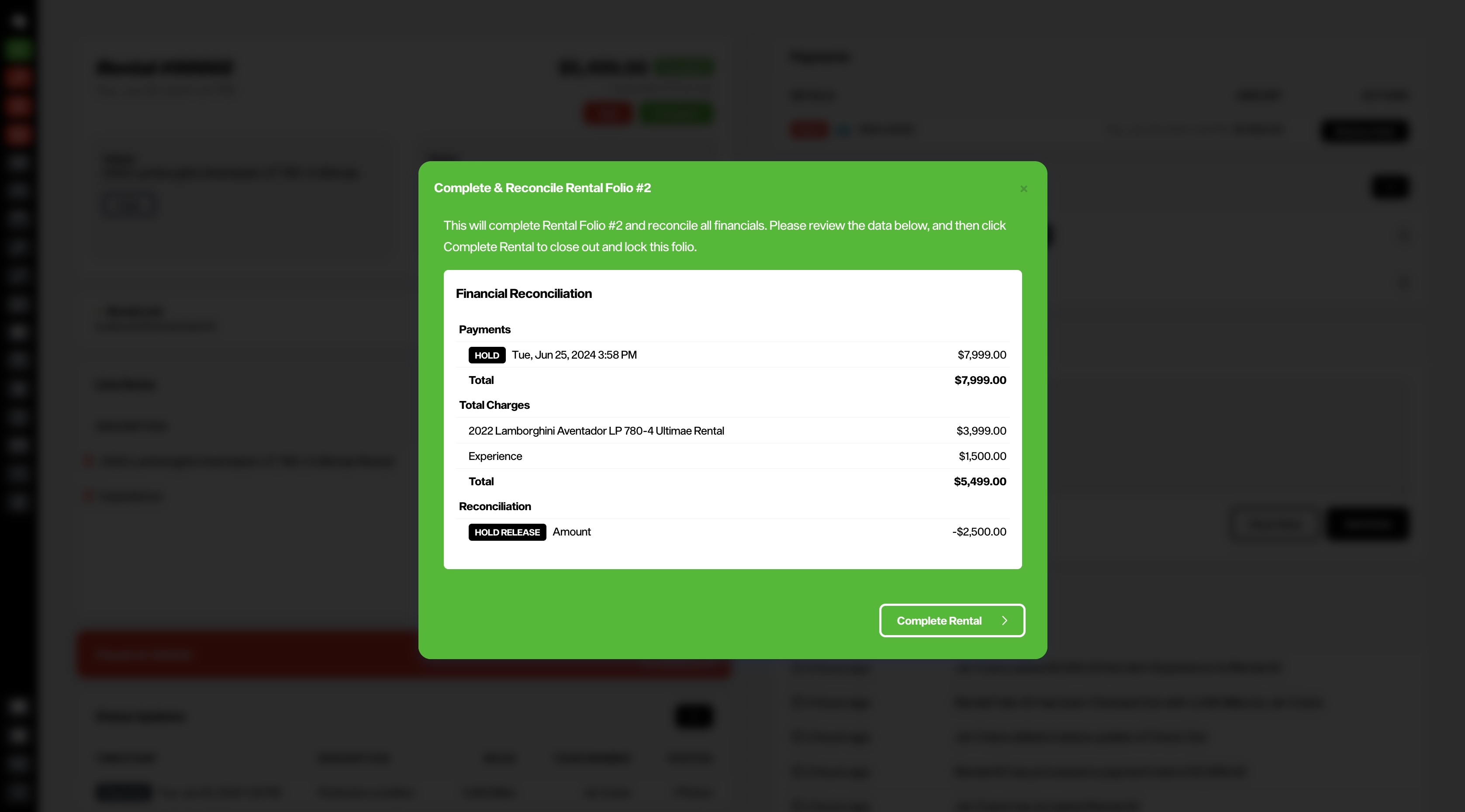 Easily add a credit card hold to the rental folio, and then release the hold upon rental completion. Provide your customer with a easy rental folio link with a breakdown of costs and payments.